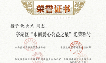 【荣誉】仇云杰总裁被授予亭湖区 “巾帼爱心公益之星”光荣称号